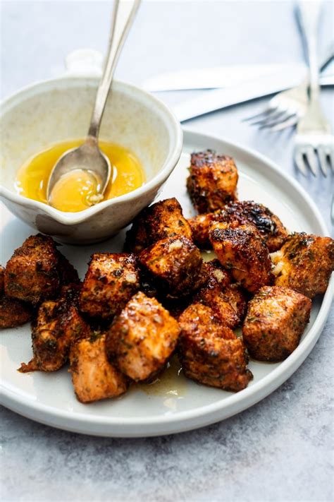 Once the salmon bites are cooked and ready to be served, you can enjoy them as they are or pair them with some tasty dipping sauces. Here are a few serving suggestions:1. Tartar Sauce: The tangy flavor of tartar sauce complements the rich taste of the salmon bites. It can be store-bought or easily prepared at home using ingredients such as mayonnaise, pickles, and lemon juice.2. Lemon Garlic Aioli: Create a zesty and creamy dipping sauce by combining mayonnaise, lemon juice, minced garlic, and a pinch of salt.3. Sweet Chili Sauce: For those who enjoy a touch of spice, sweet chili sauce provides a perfect balance of sweetness and heat.You can also serve the salmon bites as an appetizer alongside a fresh salad or as a protein-packed topping for a bed of rice or noodles.